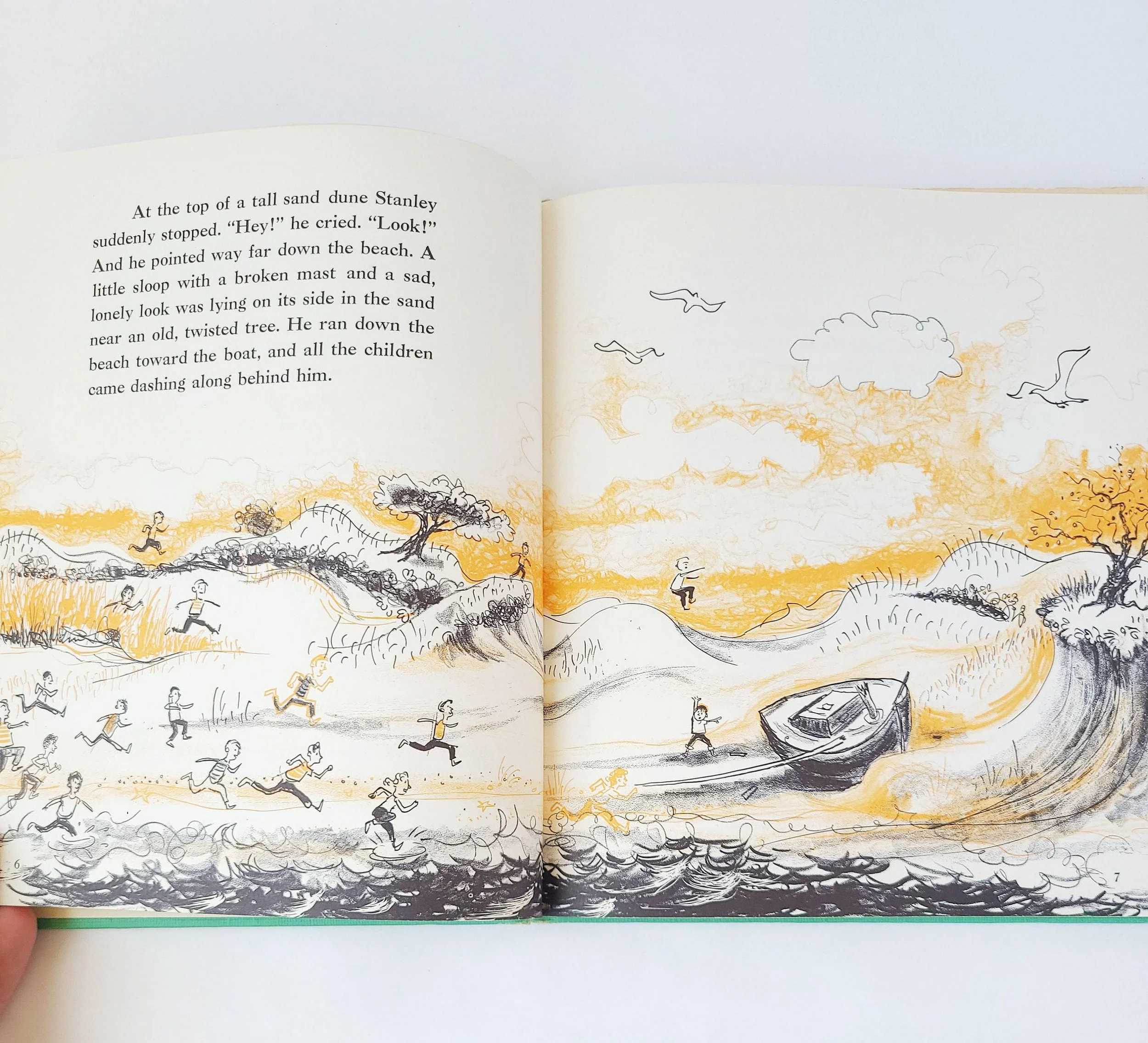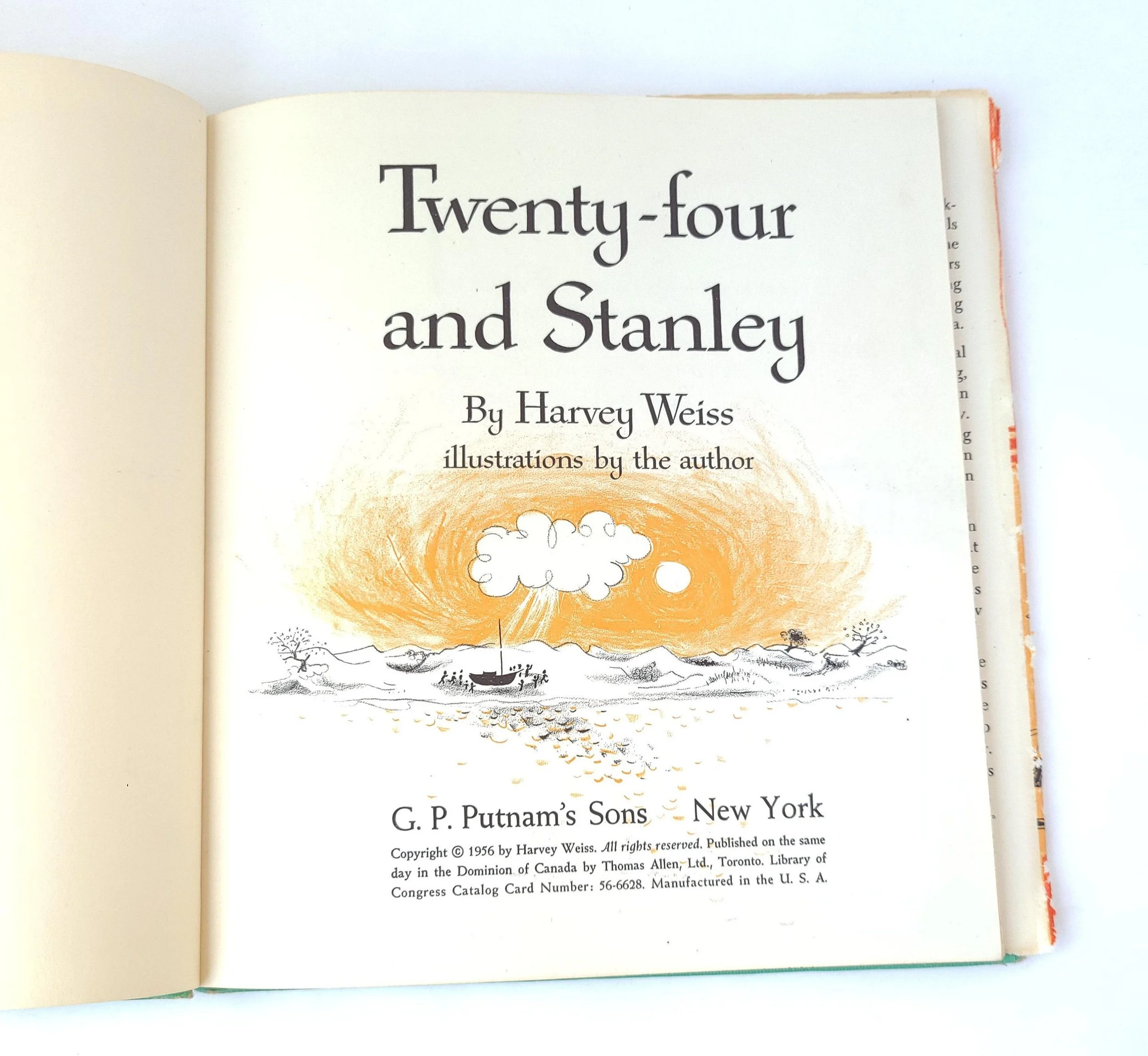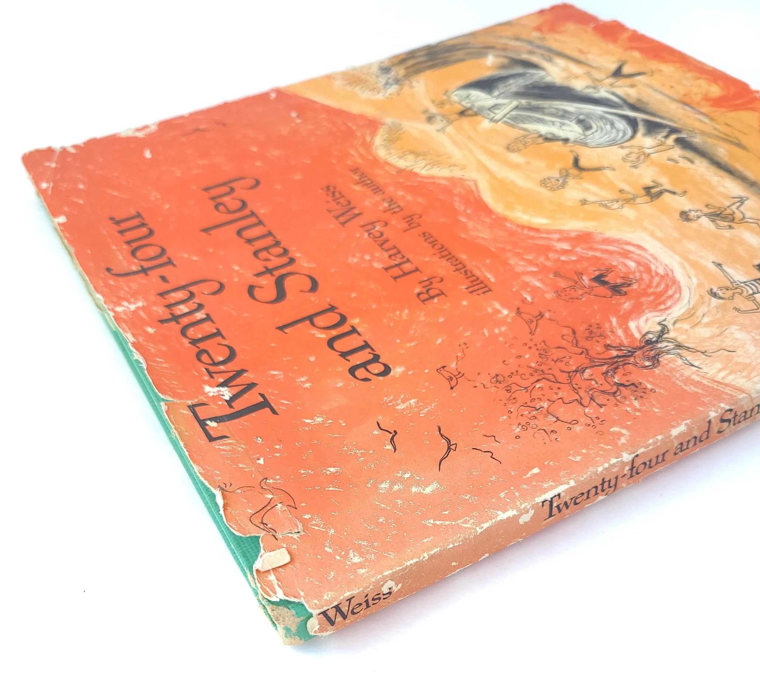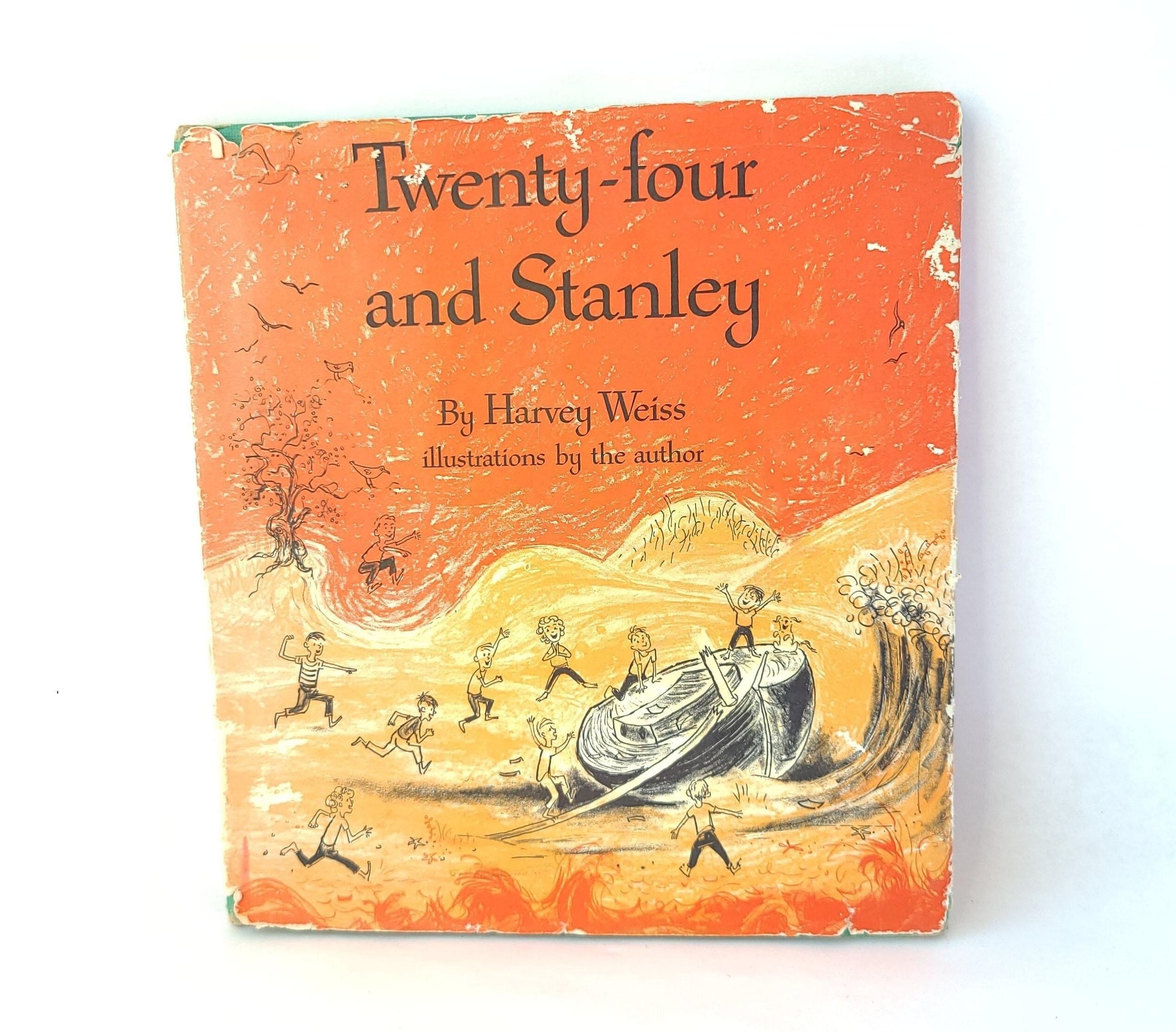 The book is in used vintage condition with the dust jacket missing and some spots of color loss to the cloth cover, along with wear and bumps to the corners. The original owner's name is written on the front end pages, and there are a few small spots of discoloration to the outer edge of the pages, but there are no torn or marked inner pages and good overall color quality.