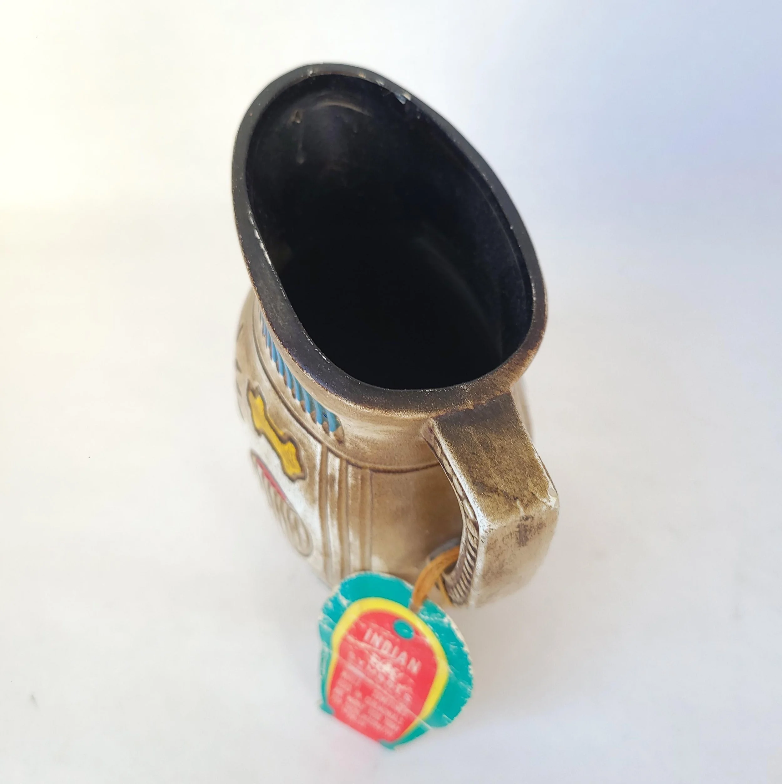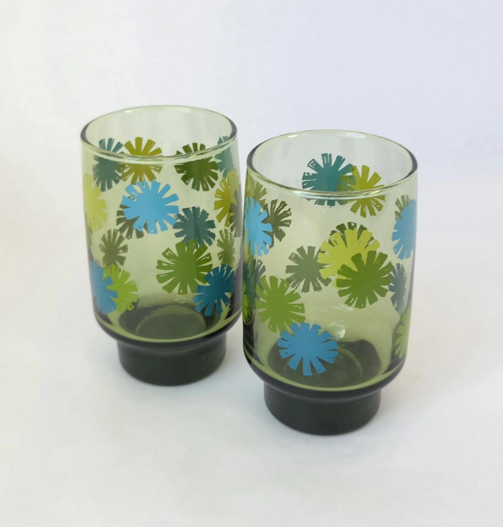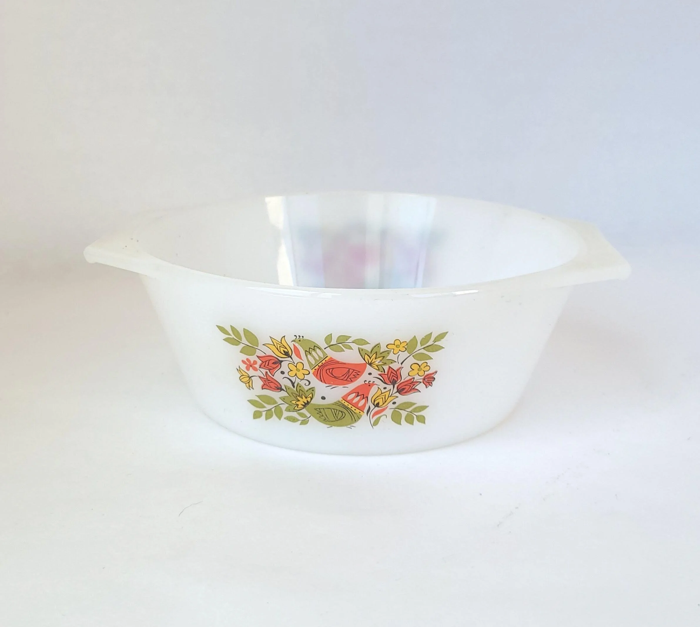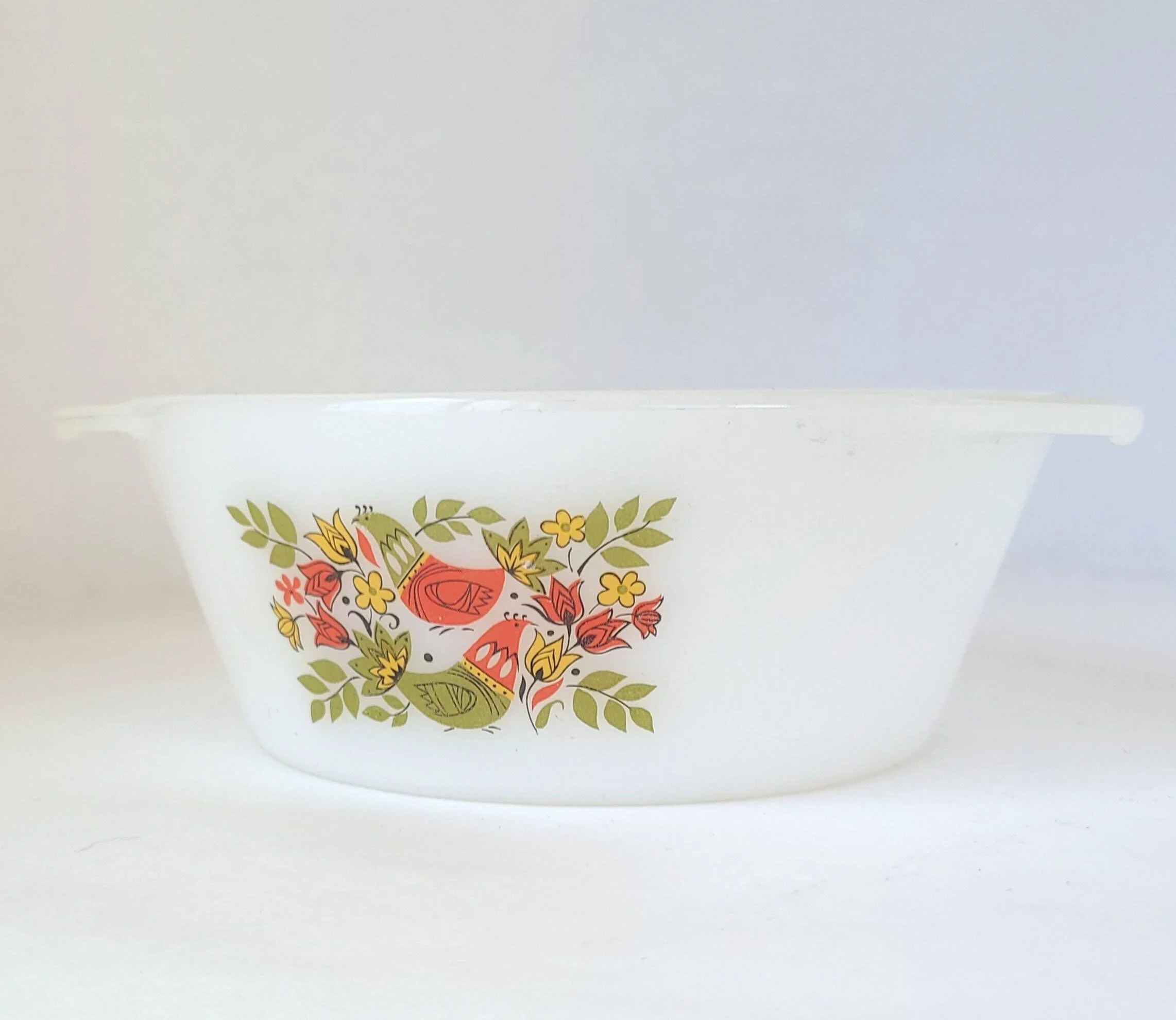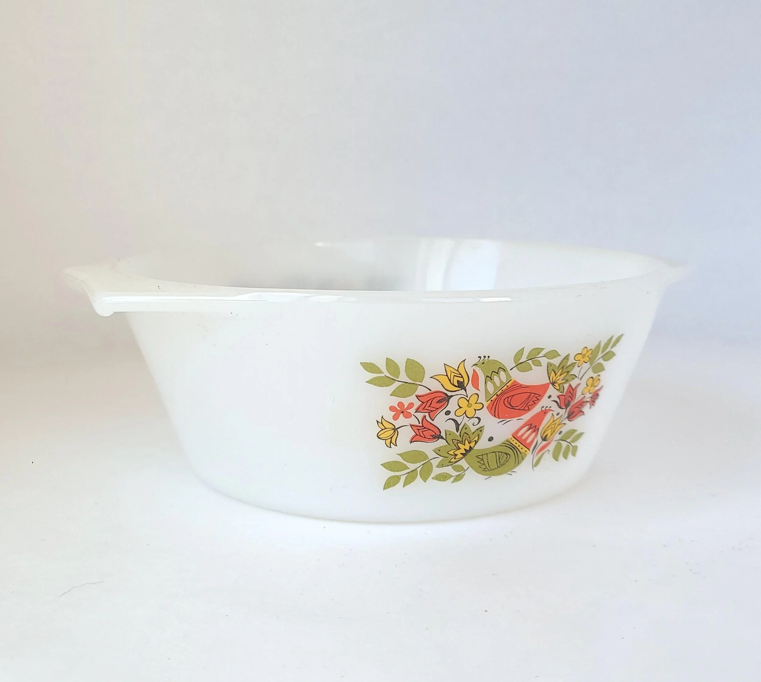 These charming vintage ceramic canisters feature a wood grain texture with a orange and yellow glazed fruit and leaf pattern. They have a rustic yet kitschy appeal that makes them a great addition to vintage inspired kitchens. The canisters are in used condition with some chips to the inside of the lids, some wear and discoloration to the knobs, and one piece (the sugar canister) does have a crack on its side that can probably be stabilized with some glue.