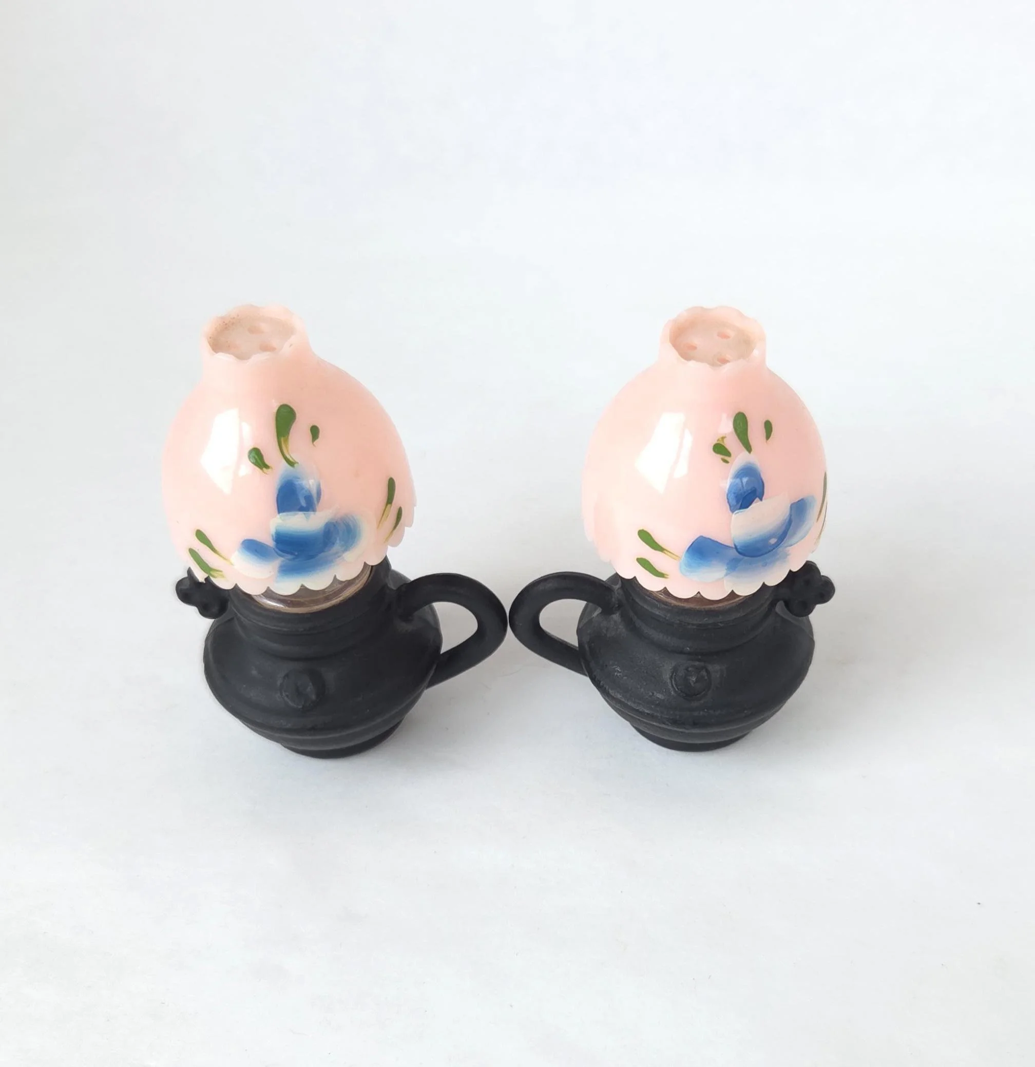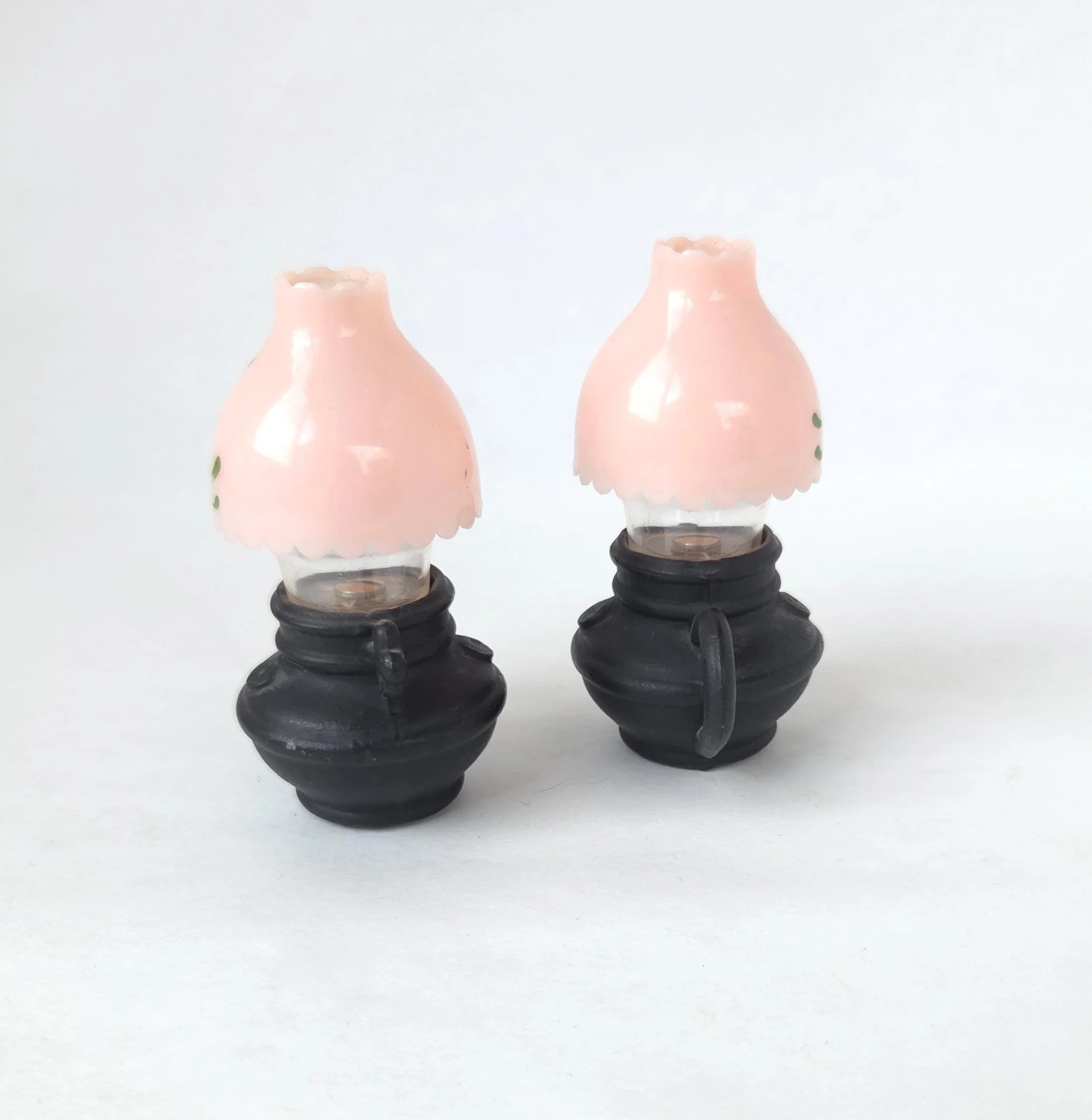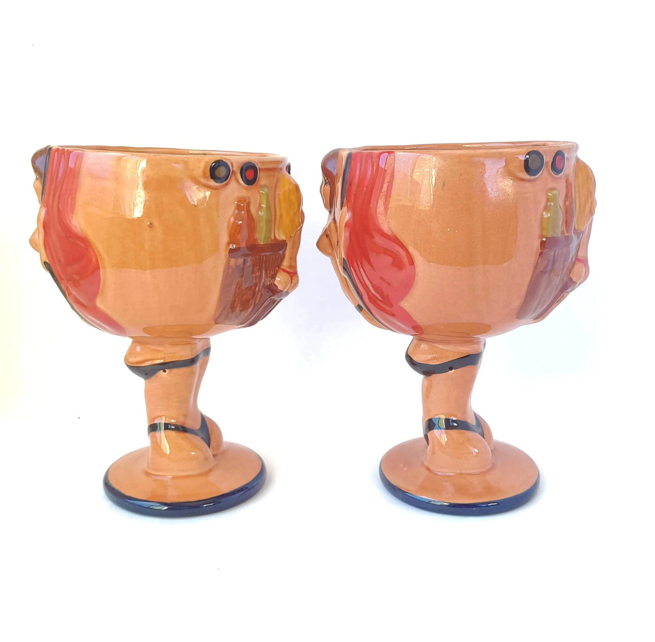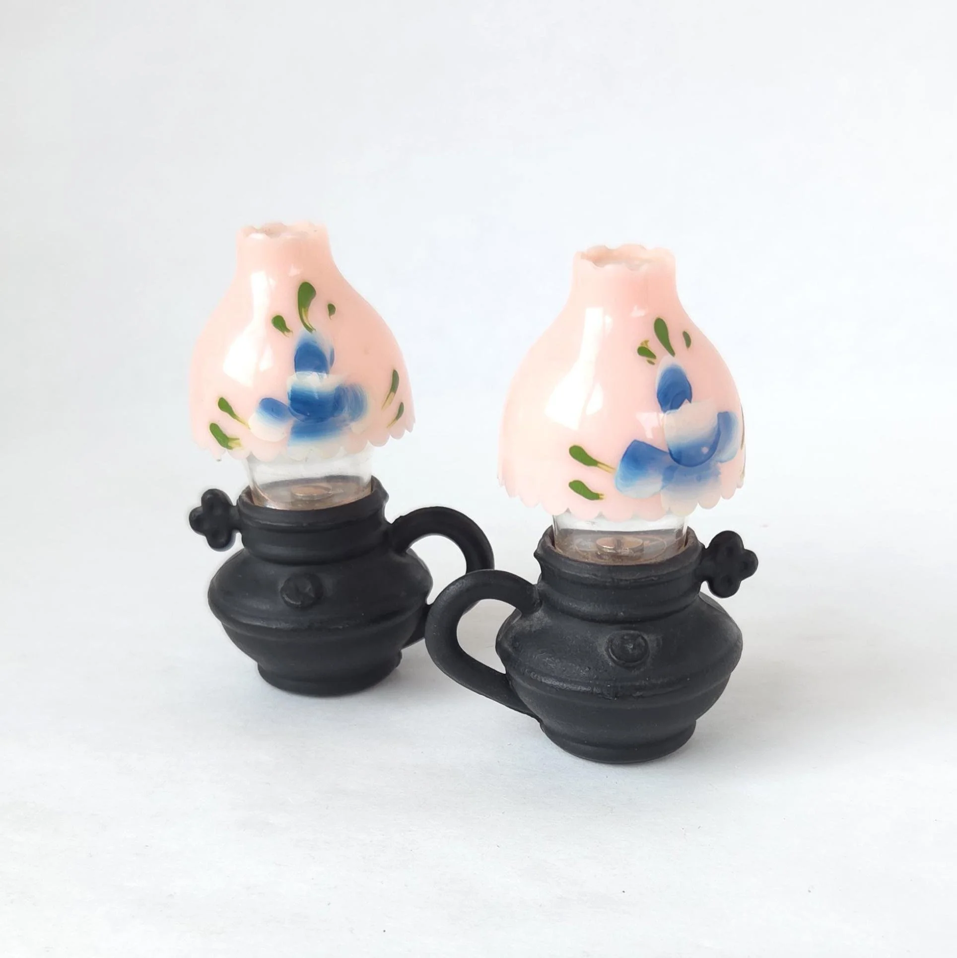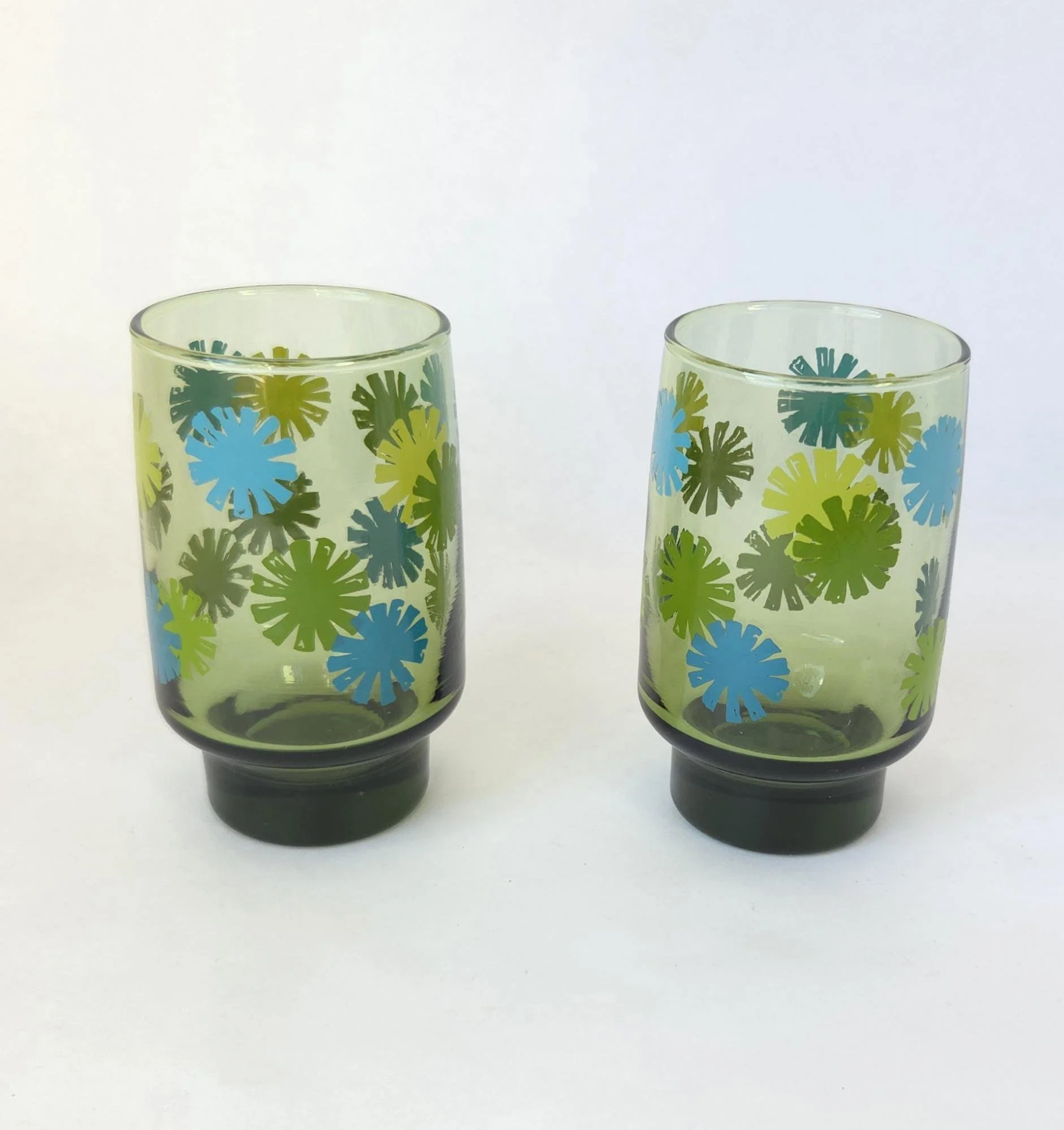 These charming vintage ceramic canisters feature a wood grain texture with a orange and yellow glazed fruit and leaf pattern. They have a rustic yet kitschy appeal that makes them a great addition to vintage inspired kitchens. The canisters are in used condition with some chips to the inside of the lids, some wear and discoloration to the knobs, and one piece (the sugar canister) does have a crack on its side that can probably be stabilized with some glue.