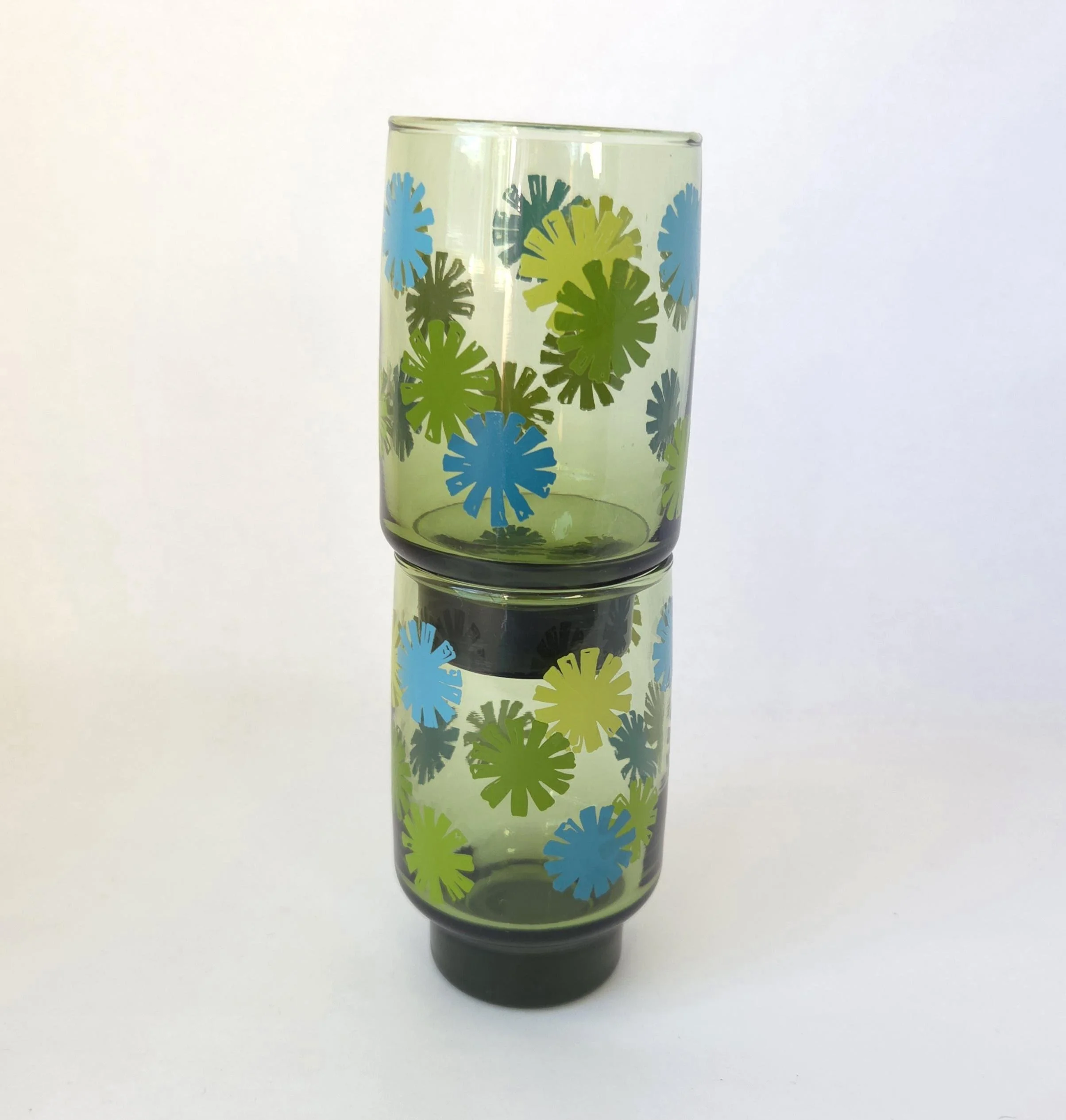 2 canisters measure 7.75 inches tall (with lids on) and 6.25 inches in diameter
