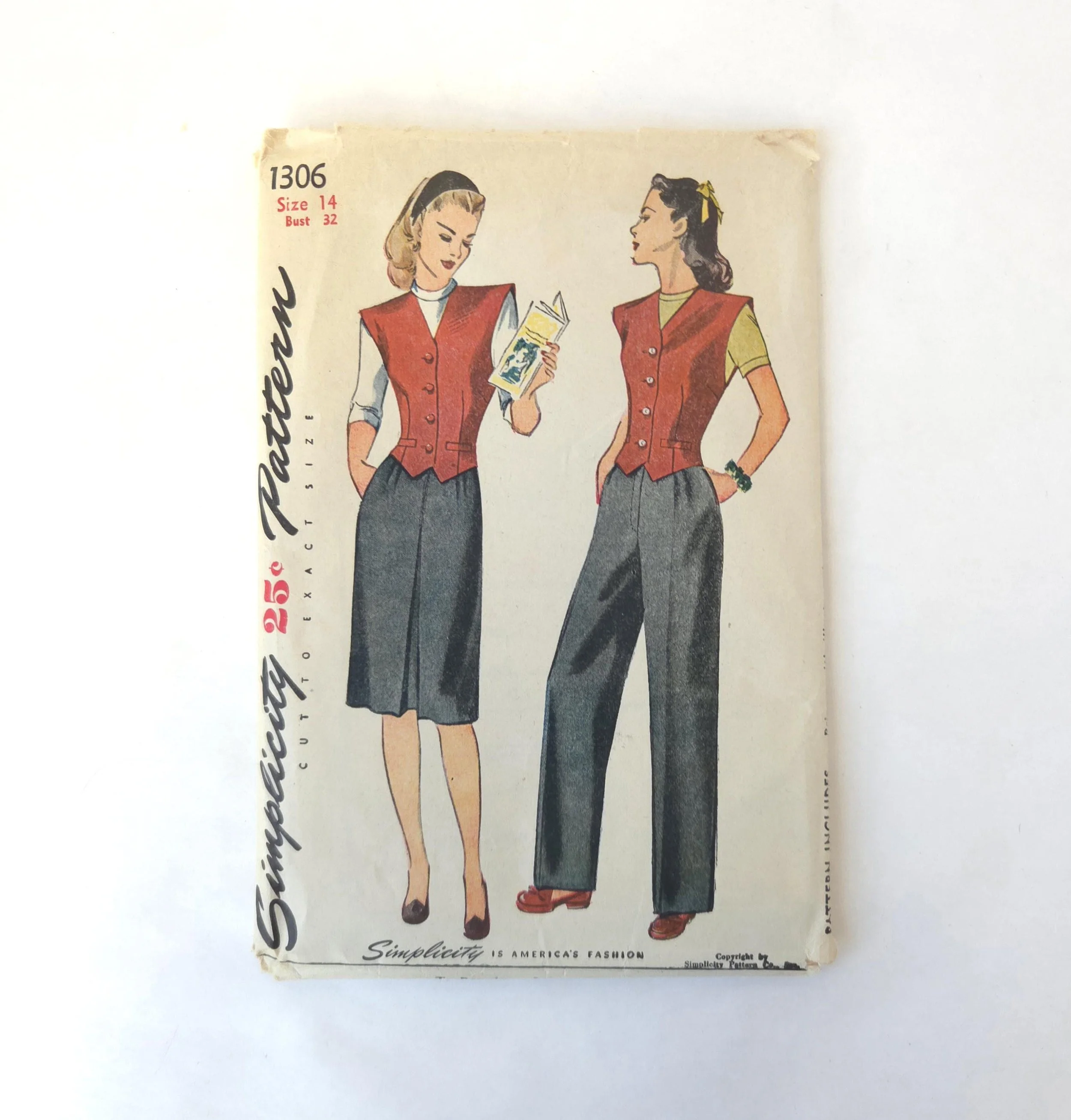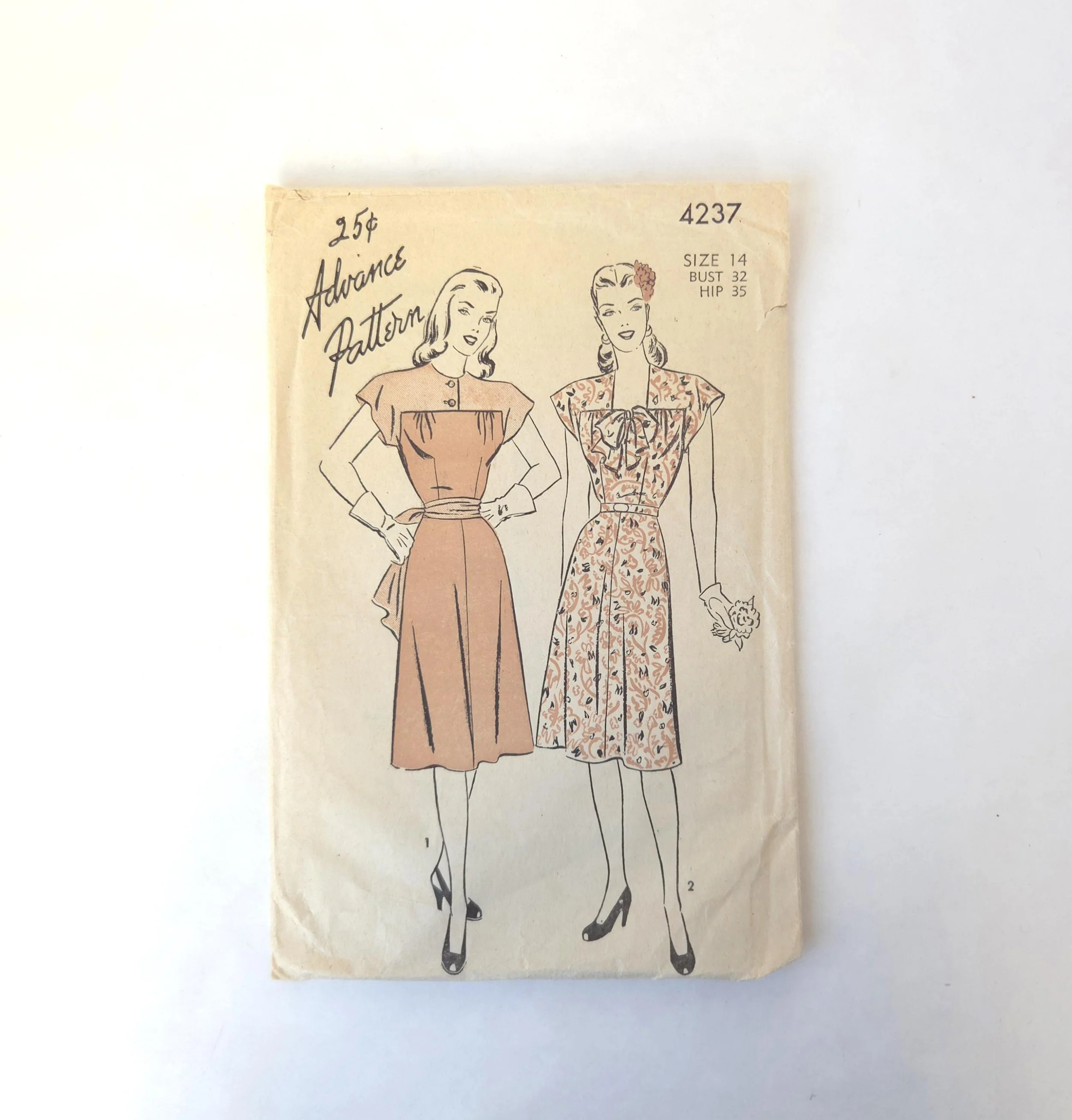 Vintage Craft Supplies Categories: All Home Decor and Art Vintage Accessories Vintage Decor Vintage Craft Supplies Vintage Craft Books Handbags and Purses Vintage Bedding Jewelry and Accessories Vintage Magazines Vintage Children's Books Vintage Cookbooks Vintage Books Vintage Toys and Dolls Vintage Wall Decor Vintage Misc Vintage Holidays Vintage Fiction Books Vintage Kitchen and Bar Vintage Figurines All / Vintage Craft Supplies 1940's Bed Jacket with Lace - Advance Sewing Pattern #4994 $18.50 1940's Dress with Yoke and Sash - Advance Sewing Pattern #4237 $25.00 1950 Hat and Bag Sewing Pattern by Simplicity - #3322 $25.00 1954 Misses Shirt - Size 14 - Simplicity Sewing Pattern #4873 $12.00 1950's Dress with Detachable Collar - Advance Sewing Pattern #5643 $25.00 1940 Afternoon Dress - Simplicity Sewing Pattern #3449 $25.00 1940's Ladies' Jacket in Two Lengths - Butterick Sewing Pattern #2859 $23.00 1950's Short Jacket - Vogue Sewing Pattern #6716 $32.00 1940's Woman's Over Blouse - Butterick Sewing Pattern #3896 $30.00 1940's Hat, Scarf and Mittens - Advance Sewing Pattern #3400 $25.00 1947 Double Breasted Housecoat - McCall Sewing Pattern #7038 $25.00 Sold out 1940's Duster Housecoat or Dress - Advance Sewing Pattern #6107 $25.00 1949 Slip and Petticoat - Simplicity Sewing Pattern #2693 $25.00 Sold out 1945 Skirt, Slacks and Vest - Simplicity Sewing Pattern #1306 $25.00 1972 Blouse, Skirt, Pantskirt and Sash - Simplicity Sewing Pattern #5235 $11.50 1975 Child's Sampler - Stitchery by Julie $22.00 1970 Simplicity Misses' Vest, Skirt and Pants Sewing Pattern 8924 $8.00 1970's Colonial Sconce Kit Heritage Style by Pilgrim Farms $30.00 1970s Heritage Style Wood Spice and Spoon Rack Kit by Pilgrim Farms $30.00 1972 McCall's Misses' Vest, Skirt and Pants Sewing Pattern 3321 $10.00 Striped Woven Fabric: Beige, Coral, Navy Polyester Silk (58x70 inches) $16.50 Red and Cream Dot Fabric: Polyester Knit, 64" Square $16.50 Kitschy Unpainted Bisque Girl Figurine $13.50 Green Knit Fabric with Geometric Dot Print - 50 x 33 inches $18.00 Dupont Savalux Screen Print Floral Fabric - 62 x 49 $24.00 Confections Recipe Panel Embroidery Kit by Bucilla: Creative Needlecraft $25.00 Ceramic Lamb Planter: Paint-It-Yourself $19.50 Butterfly Fabric: in Teal, Purple, and Khaki - 2 Yards $16.00 1975 Crewel Creative Stitchery Kit - Surprise Package Pillow $16.50 1979 Patchwork Lion Sewing Pattern by Yours Truly $10.00 1979 Sunrise Quilt Pattern by Yours Truly: Twin/Crib Size $8.00 Unpainted Plaster Christmas Tree: Bulbs Included $48.00 Pin-Up Girls & Gay Nineties Misses Vogart Embroidery Transfer Pattern $30.00 1960's Medco Knit Fabric: Colorful Dot Screen Print, 2 Yards $39.00 1946 McCall's Apron & Pot Holder Sewing Pattern - Size Medium $26.00 1946 McCall Sewing Pattern 1279: Misses' Ruffled Apron $16.00 1941 McCall's Misses' Necktie Apron Sewing Pattern #884 $24.50