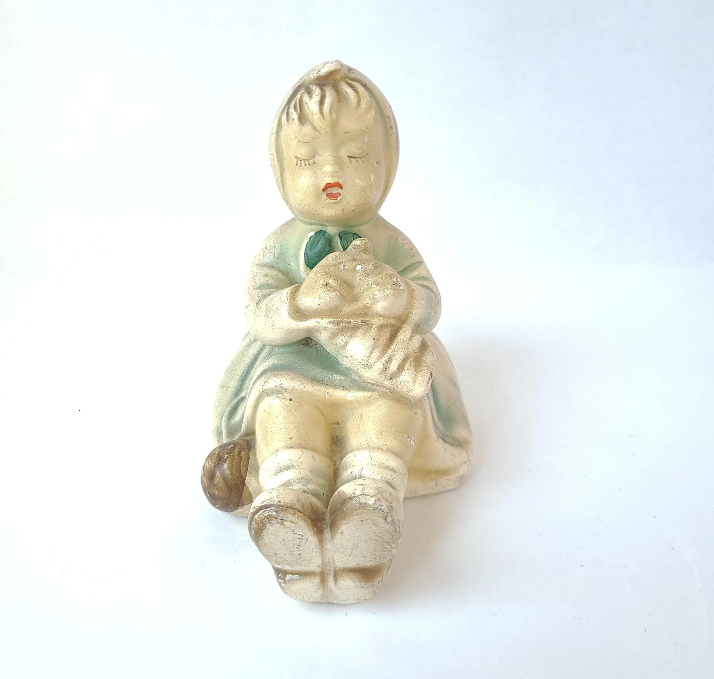 Vintage Decor Categories: All Home Decor and Art Vintage Accessories Vintage Decor Vintage Craft Supplies Vintage Craft Books Handbags and Purses Vintage Bedding Jewelry and Accessories Vintage Magazines Vintage Children's Books Vintage Cookbooks Vintage Books Vintage Toys and Dolls Vintage Wall Decor Vintage Misc Vintage Holidays Vintage Fiction Books Vintage Kitchen and Bar Vintage Figurines All / Vintage Decor Elephant Coin Bank $30.00 Circus Elephant Coin Bank by Tilso $42.00 Mushroom Illustration Set- Framed - Everything Needs Love by Pabi $34.00 Sold out 1940's General Electric Chef Clock with Red Bakelite Body - Model 2H18 $75.00 1970's Avon Duck Decoy Trinket Box $14.00 1970's Gold Zodiac Ashtray $48.00 Alphabet Block Nursery Planter - Made in Japan $25.50 Windmill Tin Box in Blue $14.00 Amberina Glass Footed Candy Dish in Jeanette Oak and Acorn Design $18.50 Italian Majolica Fox and Hen Sculpture $225.00 Amber Glass Bottle Set: Hiram Walker, Grand Rapids Brewing, Schlitz $79.00 Gnome Beer Jug: Thorens Musical Ceramic Growler $72.00 Ceramic Ashtray with Flocked Dog Figurine $39.00 Baby Train Planter in Blue and Pink with Cutesy Bear $20.00 Praying Child Light Switch Plate $9.50 I Am The Master of The House Porcelain Plate $19.50 Glass Strawberry Pedestal Jar with Lid - Carlton Glass $32.00 Tiger Latch Hook Rug $26.00 Snow White Gold Plaster Coin Bank Figurine $24.00 Plastic Clown Coin Bank $20.00 Milk Jug Vase - Brown Drip Stoneware $18.00 Mid Century Yona Ceramic Trinket Box $40.00 Mid Century Turquoise & Gold Ceramic Planter - California Original L703 $95.00 McCoy Pottery Dog and Cat at Water Mill Planter $26.50 Little Red Riding Hood Collectible Plate by Kaiser $19.50 Kitschy Kid's Jewelry Box $14.00 Hooked Rug Horse Pillow $18.00 Groovy Floral Wood Serving Tray $34.00 Floral Fruit Bouquet Decorative Tin Tray by Daher - 16.25 Inches $36.00 Flocked Elephant in Hat Coin Bank $38.00 Chalkware Musician Bookends $30.00 Ceramic Monkeys in a Barrel Bookends $34.00 Cabbage Patch Kid Ceramic Photo Frame $14.50 Beaded Swan Basket in Pearl and Gold $19.50 American Family Nursery Scale - Pale Yellow Metal $75.00 Alaskan Reindeer Skin and Wood Inupiat Doll $45.00 1990 Hummel "Stormy Weather" Plate $19.50 1990 Hummel "Squeaky Clean" Plate $19.50 1990 Hummel "Little Musicians" Plate $19.50 1989 Hummel "Apple Tree Boy and Girl" Plate $19.50 Large Ceramic Piggy Bank with Bowtie $65.00 Pumpkin Planter by Lefton #640 $89.00 Leaf Tray by Maurice of California $29.00 Mr. and Mrs. Retirement Fund Piggy Banks by Lefton $40.00 Doctor's Bag Planter: Get Well Gift by Napcoware $32.00 Noah's Ark Coin Bank: Made in Japan $24.50 Pink Metallic Fish Ashtray - Made in Japan $25.00 Plaid Curtain Panel: Green, Orange, Yellow Flannel - 85x70 Inches $39.00 Randotti Tiki Figure by Ba Hedley #827 $395.00 Shenango China Shriner Plate $80.00 1981 Strawberry Patches Tile Trivet Set by Jasco $20.00 Swedish Folk Art Trivet: Bless This House $16.50 Talavera Pottery Planter with Colorful Bird and Flower Design - 5 Inches Tall $52.00 Thumper Rabbit Coin Bank $24.00 Wishing Well Coin Bank with Pixie - Made in Japan $26.00 Wooden Tiki Figure - 10.5 inches $34.00 1966 Bust of Spanish Lady in Lace Headpiece by Marwal $70.00 1956 Pink Ceramic Vase by Olive Johnson $89.00
